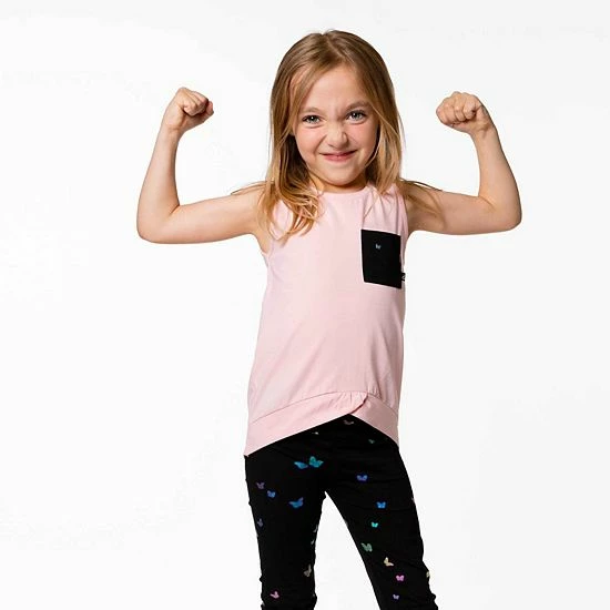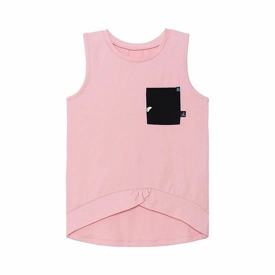 A butterfly print pocket adds a touch of whimsy to this high-low tank top. The Printed Pocket Tank Top Light Pink features a sleeveless silhouette with a round neckline, a contrast pocket on the left chest, and a V-shaped hem.