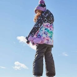 Made from eco-friendly polyester produced with 100% post-consumer recycled plastic bottles, this colorful tie dye snowsuit is designed to keep little ones warm, cozy, and oh-so-stylish. Our Printed Unicorns and Tie Dye Two Piece Snowsuit Black features an insulated jacket with a fleece lining, a fleece-lined hood, articulated sleeves, and a snow skirt. The pant is detailed with adjustable logo straps, articulated knees, and reinforced panels for long-lasting durability.