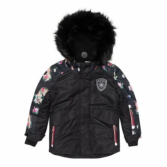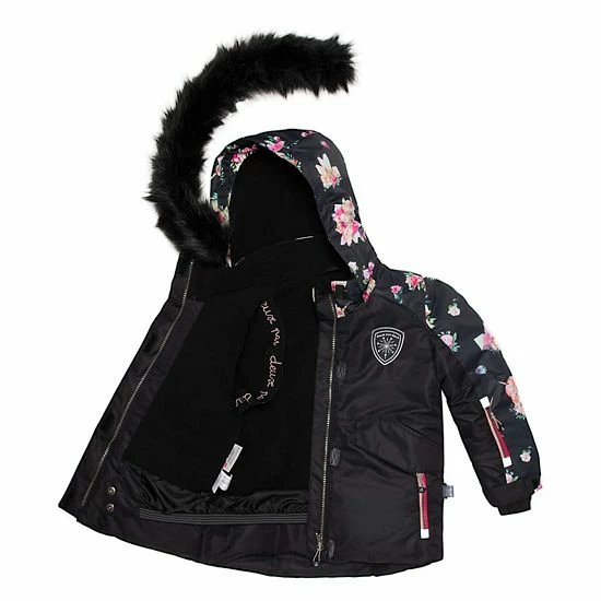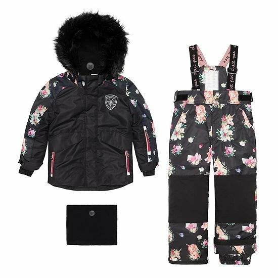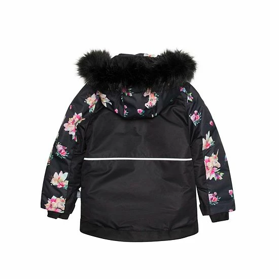 Colorful unicorns and flowers lend vibrant style to this insulated two-piece snowsuit. Our Printed Unicorns Two Piece Snowsuit Black features a fleece-lined jacket with a faux fur trimmed hood, a snowskirt at the hem, and elastic cuffs. The pants feature an adjustable waistband, adjustable logo straps, reinforced panels on the knees, seat, and hem, and articulated knees. Made from eco-friendly polyester produced with 100% post-consumer recycled plastic bottles, this suit is perfect for any day in the cold and snow.