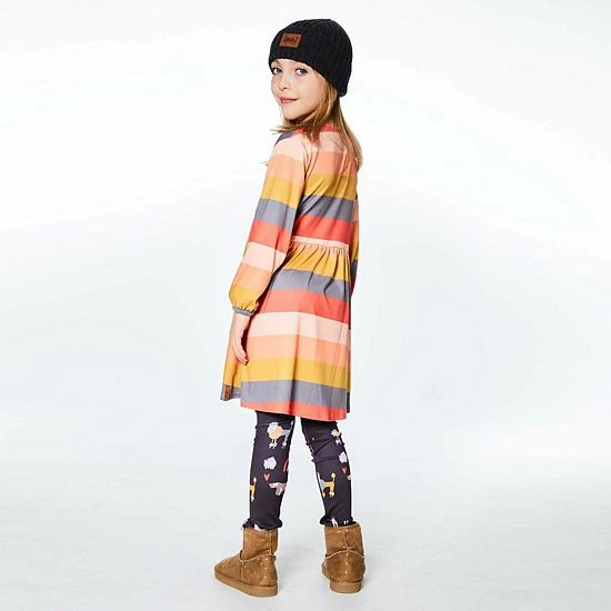 She can play and twirl and run all day in our Striped Long Sleeve Dress Pink, Red and Grey. Super comfy for little ones to wear, this design boasts a round neckline, a shirred waistband, and a woof print patch pocket on the left chest.