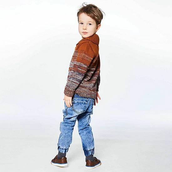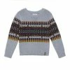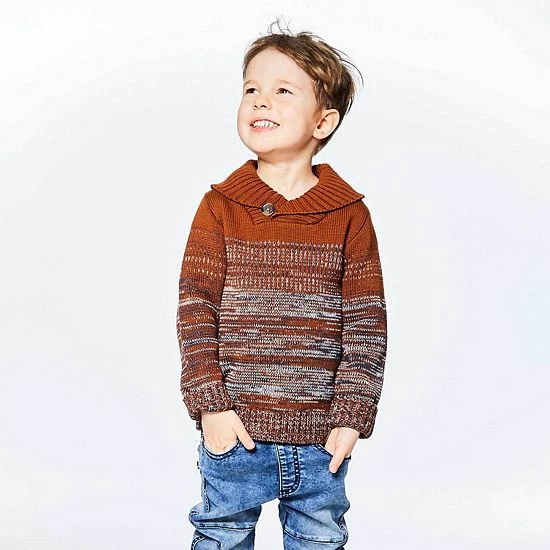 A rib knit shawl collar lends contemporary charm to our Sweater Knit Top With Collar. Soft and cozy in an acrylic/cotton blend, this pullover sweater features a horizontal stripe pattern, long sleeves with cuffs, and rib knit trim at the collar, cuffs, and hem.