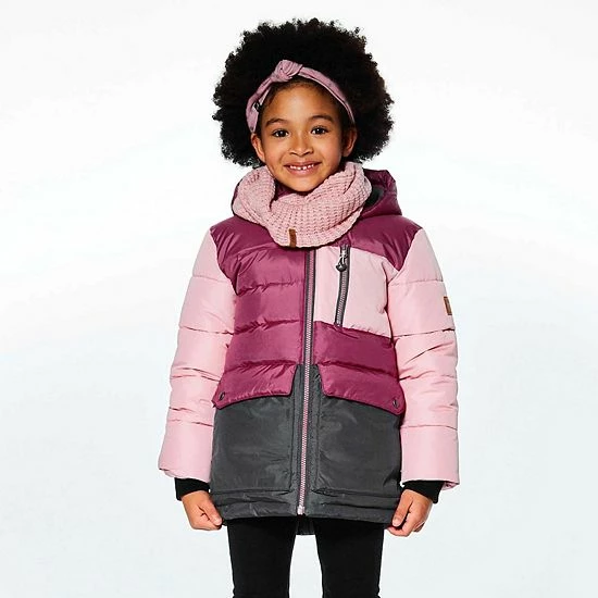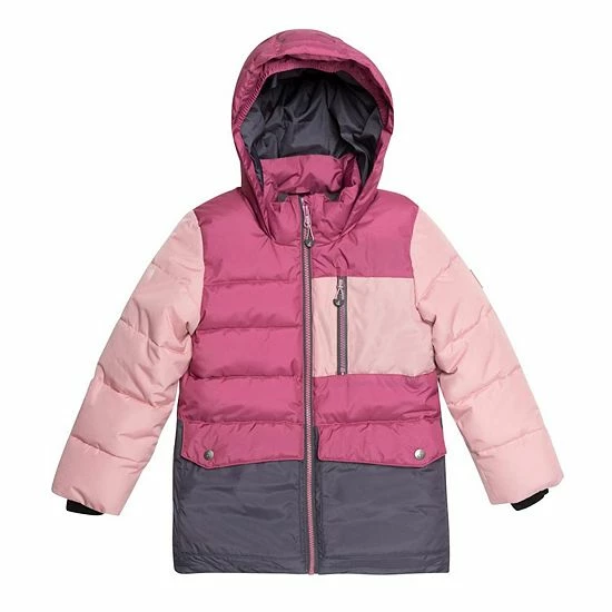 Stay warm on the coldest days with our Tricolor Puffy Jacket Pink, Fuchsia and Dark Grey. This quilted puffer coat features a hooded silhouette with horizontal quilting, a zip front placket, storm cuffs, and two snap front flap pockets. It’s detailed with a zippered pocket on the left chest and a logo patch on the sleeve.
