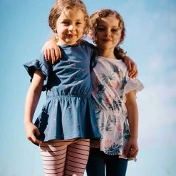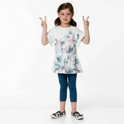 A fun flamingo print makes our Tunic and Capri Set Off White Flamingo a playful addition to any little girl’s wardrobe. This two-piece set is made from soft organic cotton and features a flamingo print tunic top with ruffled short sleeves, a round neckline, an elastic waist, and a peplum hem with ruffles down each side. Solid capri leggings with an elastic waist complete the look.