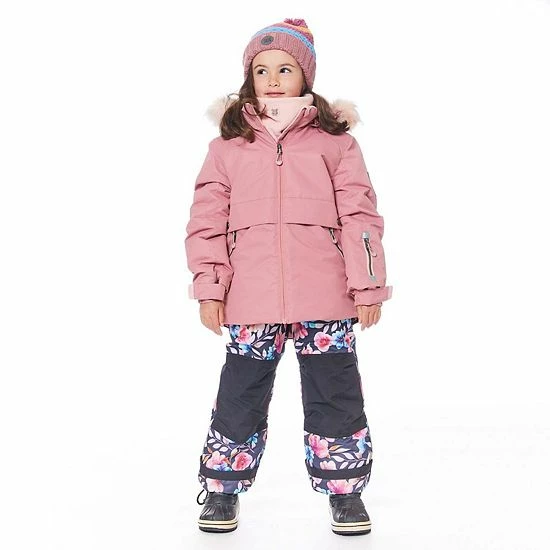A floral print lends sweet, girly style to this insulated and water-resistant two-piece snowsuit. The Two Piece Snowsuit Autumn Flower Print Grey and Dusty Pink is made for little girls who love to play in the snow. With a cozy lining, functional pockets, and reflective trim, this set is perfect for any cold winter day.
