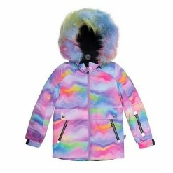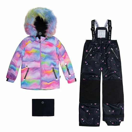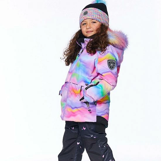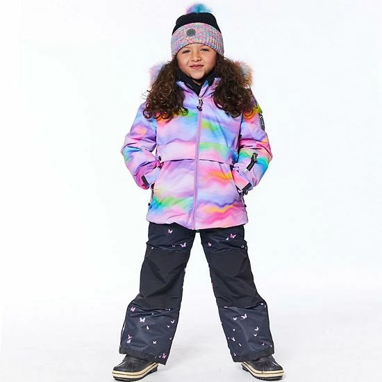 An iridescent rainbow print makes this two-piece snowsuit perfect for a day of playing in the snow. Our Two Piece Snowsuit Iridescent Rainbow Print and Butterflies is cozy, comfortable, and designed to protect her in even the coldest temps, allowing for hours and hours of stylish outdoor play.