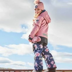 Made from eco-friendly polyester produced with 100% post-consumer recycled plastic bottles with PrimaLoft® insulation, our Two Piece Technical Snowsuit Dusty Rose and Navy Printed Roses is loaded with details to keep little ones dry during snow sports. The jacket boasts articulated sleeves, a snow skirt, a wind stopper placket, and a protective hood. The pant is detailed with adjustable logo straps, sealed seams, waterproof zippers, and reinforced Cordura panels on the knees and seat.