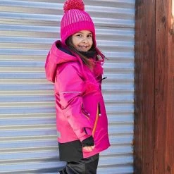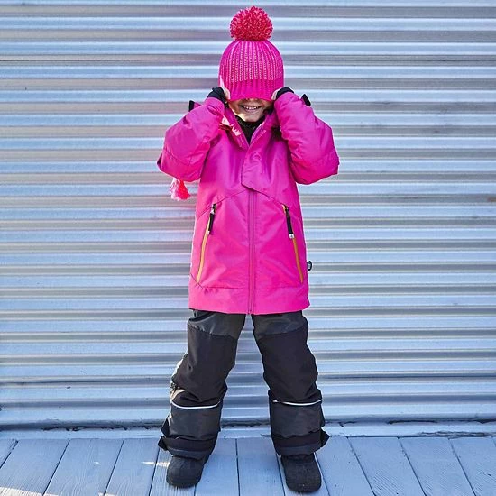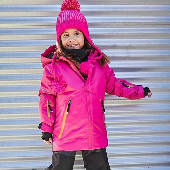 Made from eco-friendly polyester produced with 100% post-consumer recycled plastic bottles with PrimaLoft® insulation, our Two Piece Technical Snowsuit Fuchsia and Black is loaded with details to keep little ones dry during snow sports. The jacket boasts articulated sleeves, a snow skirt, a wind stopper placket, and a protective hood. The pant is detailed with adjustable logo straps, sealed seams, waterproof zippers, and reinforced Cordura panels on the knees and seat.