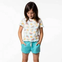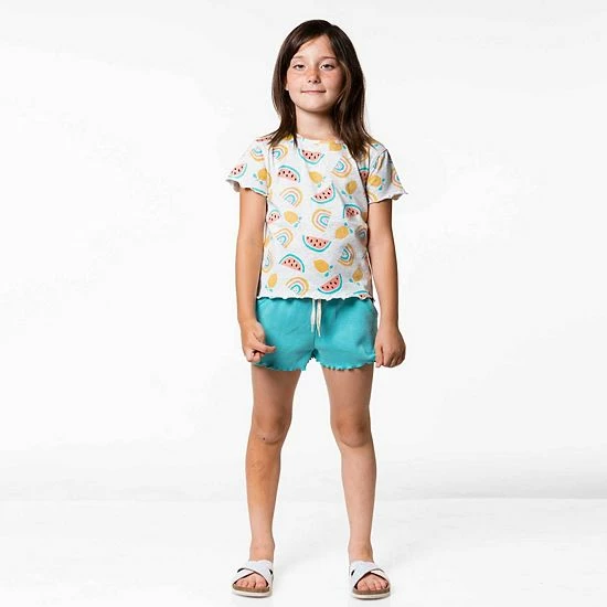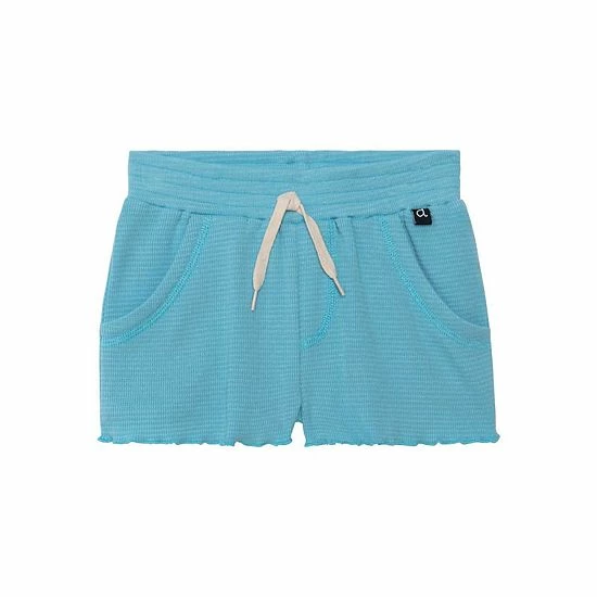 Lettuce edging adds a sweet touch to our Waffled Short With Pocket Turquoise. Soft and lightweight in a cotton/poly blend with a waffle texture, these shorts are a perfect choice for any day of play. They’re detailed with an elastic drawstring waistband, scoop front pockets, and a small logo label at the hip.
